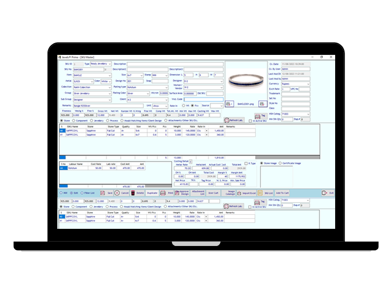 Jewels® Prime is a well-organized jewelry manufacturing system which provides complete step-by-step client order traceability; automates every aspect of your jewelry manufacturing processes, inventory handling, controlling movement of goods from one department to another & capturing every single movement of gold, silver, components, diamonds, color stones, job bags, tools, accessories, finished jewelry products and much more.